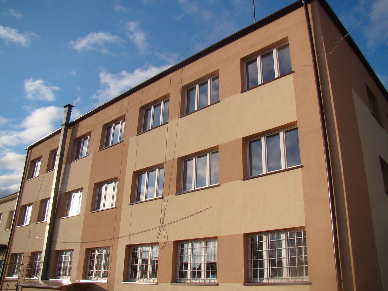 Opis zakresu projektu – w ramach zadania „Termomodernizacja budynku Urzędu Gminy w Dmosinie” docieplone zostały ściany zewnętrzne i stropodach. Dla całego budynku wykonane zostało nowe orynnowanie z rur i rynien z blachy ocynkowanej powlekanej. Wymieniono stare okna drewniane na okna PCV. We wszystkich oknach zamontowane zostały nowe parapety zewnętrzne z blachy ocynkowanej, powlekanej, natomiast w oknach wymienionych od strony wewnętrznej zamontowane zostały parapety wewnętrzne z białego konglomeratu.