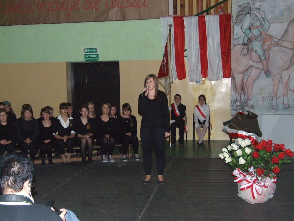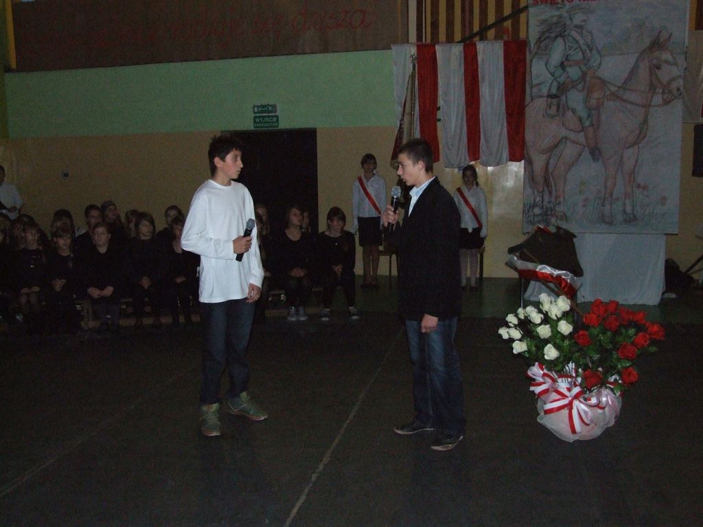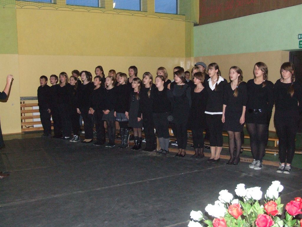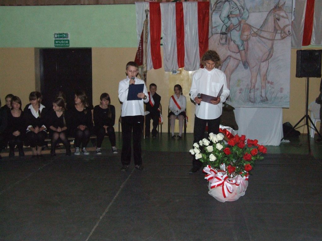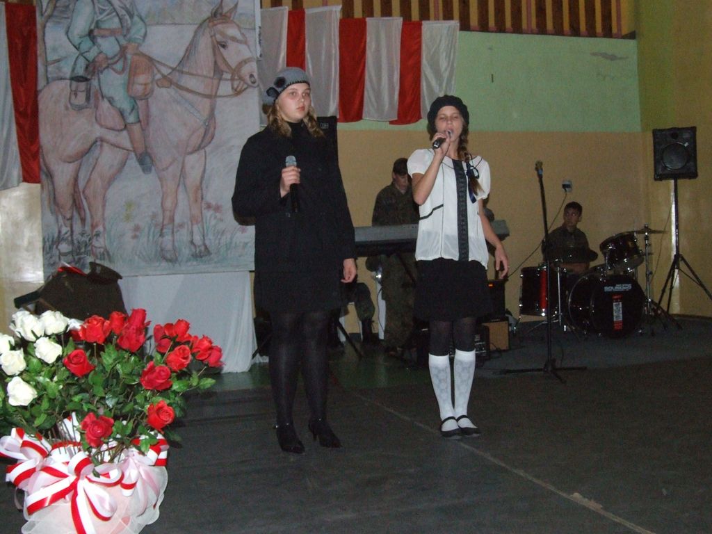 Program słowno-muzyczny był oparty w przeważającej mierze na pieśniach legionowych, które w nowej aranżacji wykonał szkolny zespół rockowy z III kl. Gimnazjum pn "Kastor" w składzie: Aleksander Nowicki, Bartłomiej Kaczmarski, Piotr Białek, Patryk Borowiak. Atmosfera była niepowtarzalna, a soliści, recytatorzy, zespół i chór szkolny ( prowadzony przez Pani mgr Ewę Kowalską ) zostali nagrodzeni owacjami na stojąco przez tłumnie przybyłych w tym dniu rodziców i zaproszonych gości.