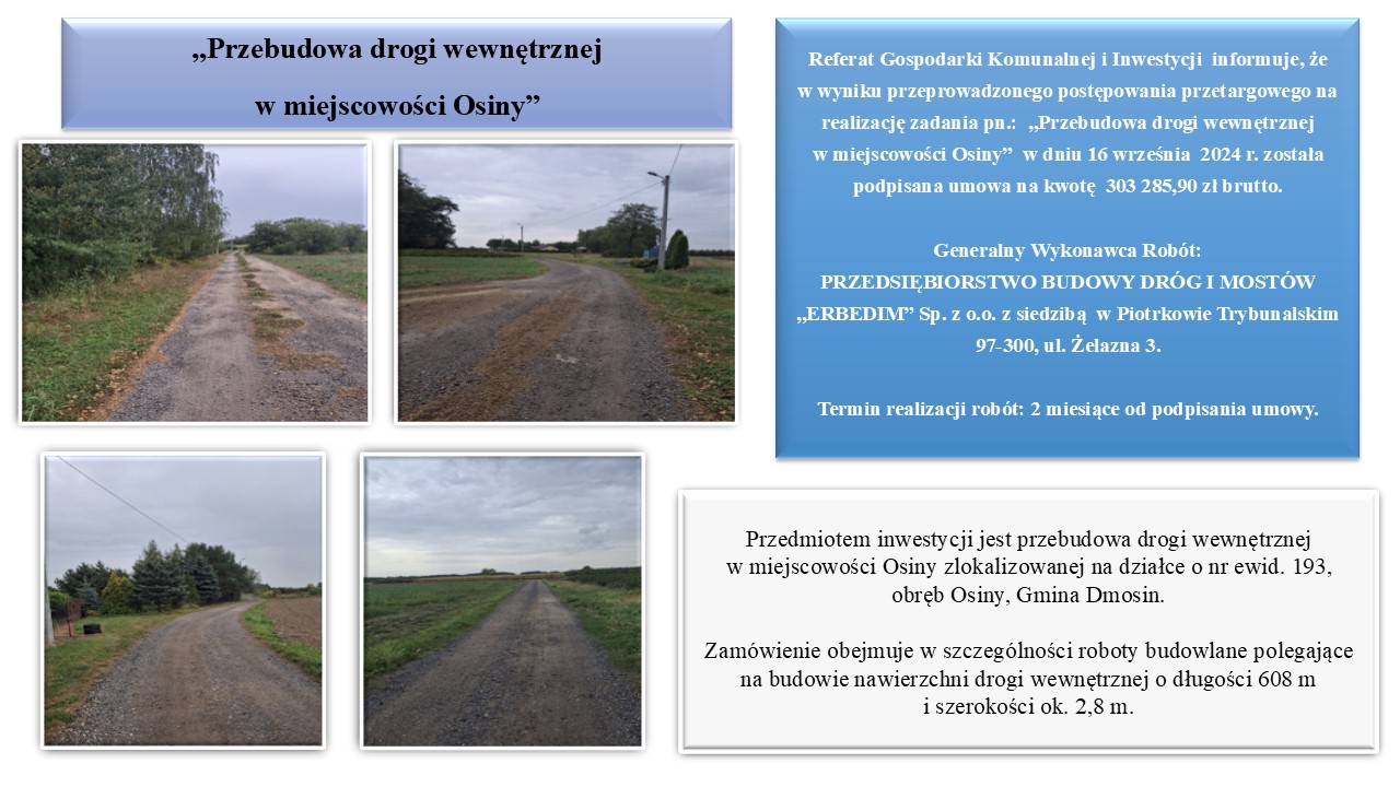 Przebudowa drogi wewnętrznej w miejscowości Osiny