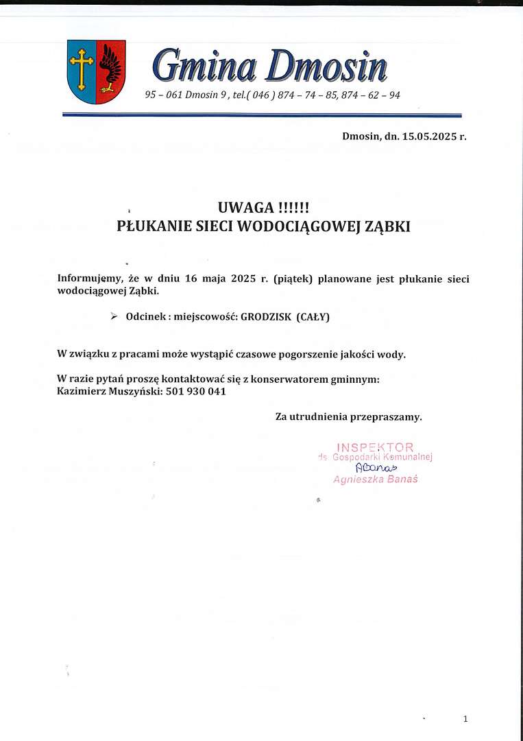 Komunikat - Płukanie sieci wodociagowej Ząbki