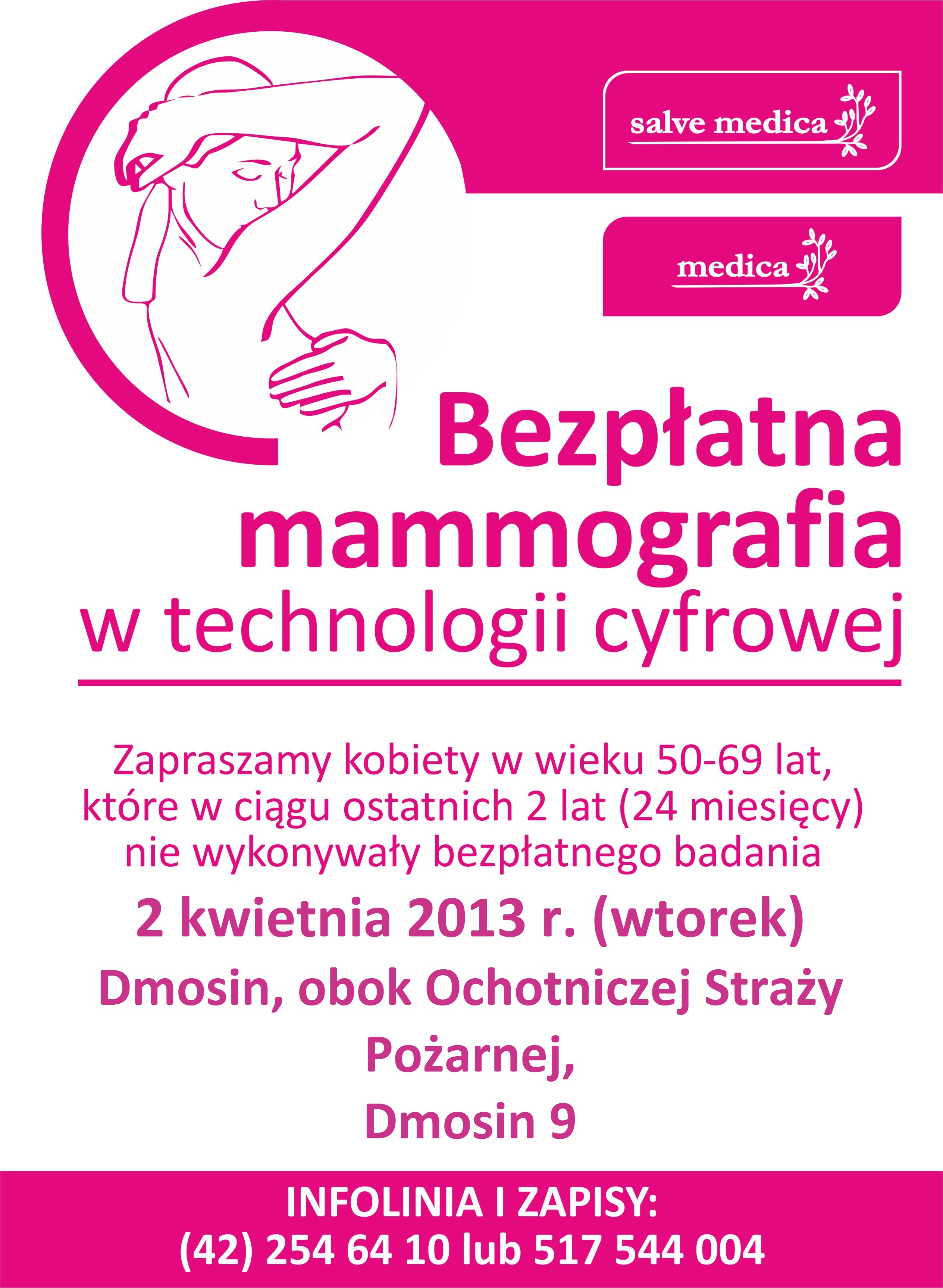 BEZPŁATNA MAMMOGRAFIA dla kobiet w wieku 50 - 69 lat w Gminie Dmosin