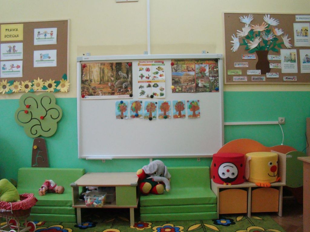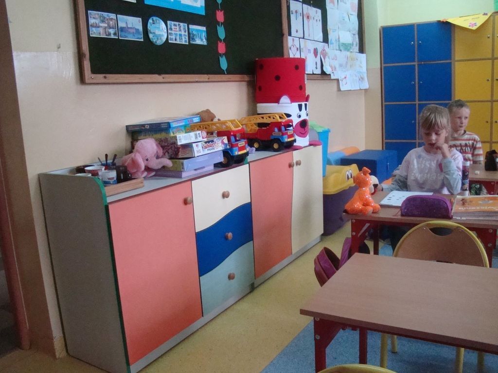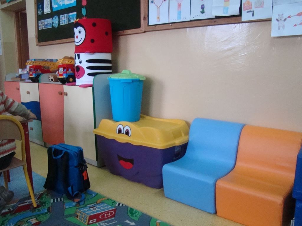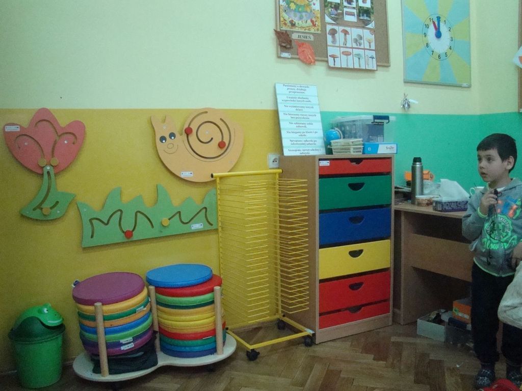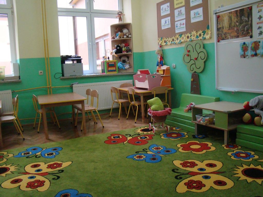 3) wyposażenie w meble: różnego rodzaju szafki i regały, komody, krzesełka, stoliki, biurka, dywany, tablice ekspozycyjne, pojemniki, koszyki, półki, kolorowe aplikacje na ścianę, suszarki do prac plastycznych, kosze na śmieci;
