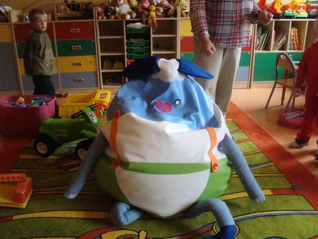 4) wyposażenie w meble wypoczynkowe: bufy o różnych kształtach i rozmiarach, bujaki, stoliki do puf, kanapki rozkładane z pianki, poduszki z gąbki, stojaki do poduszek, maty gimnastyczne, zestawy kostek świetlicowych,