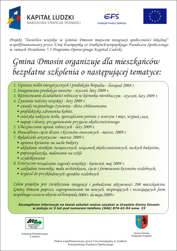 Gmina Dmosin organizuje dla mieszkańców bezpłatne szkolenia