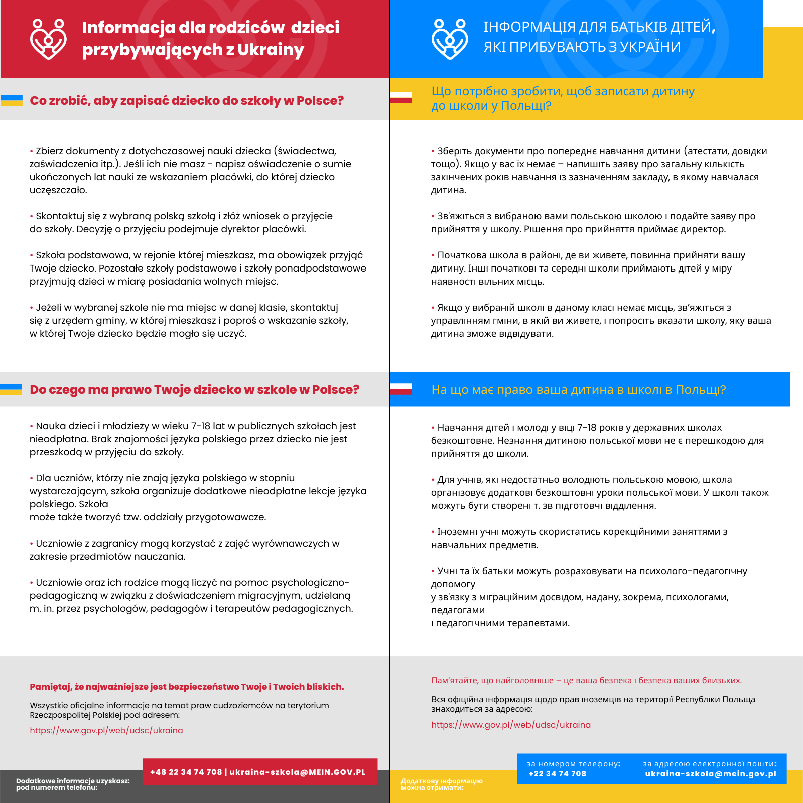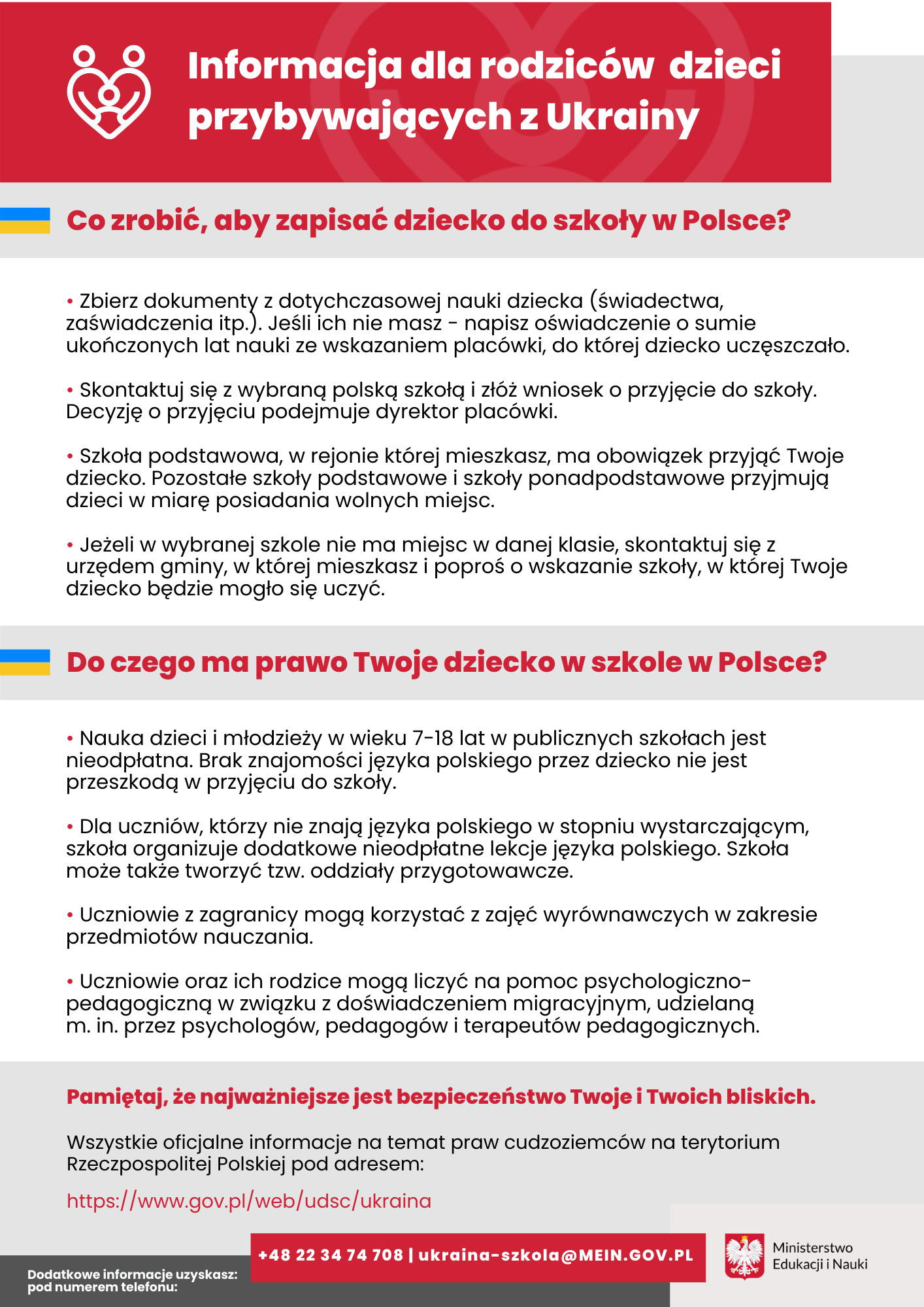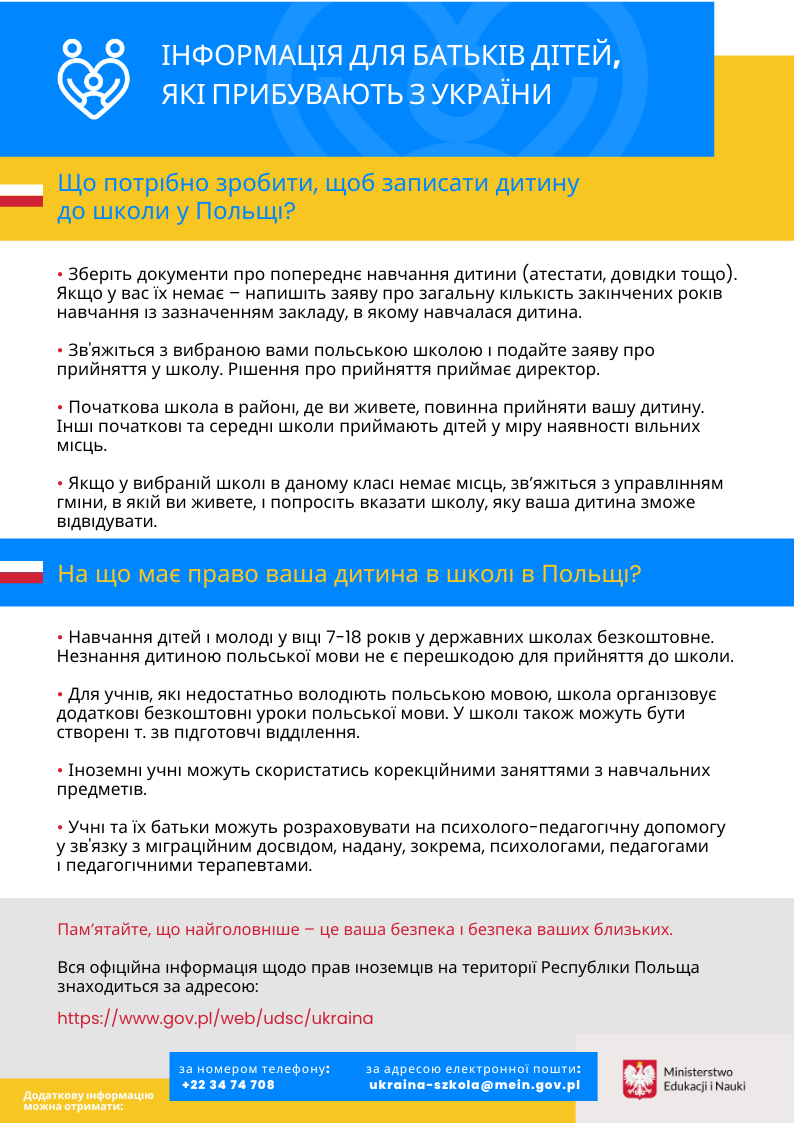 Informacja dla rodziców dzieci przybywających z Ukrainy