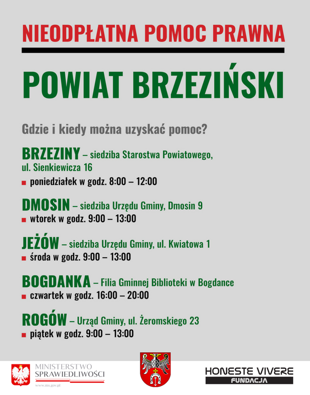 Udzielanie nieodpłatnej pomocy prawnej w Powiecie Brzezińskim