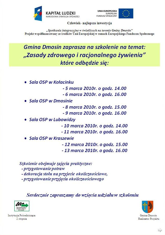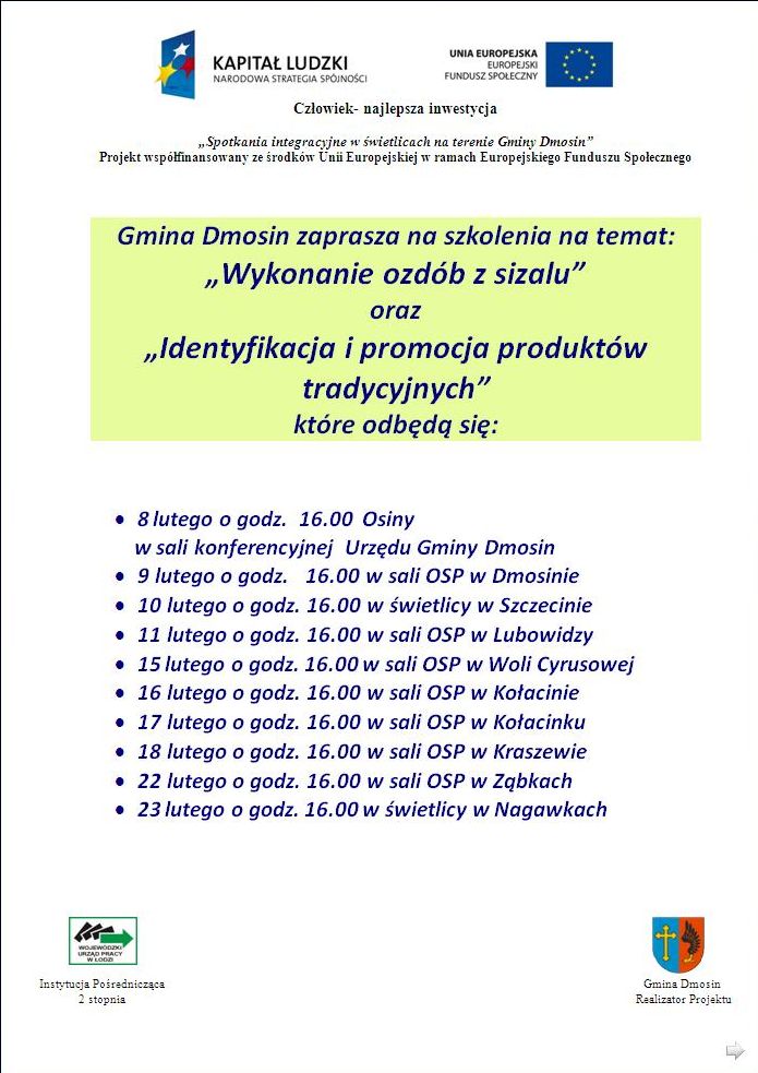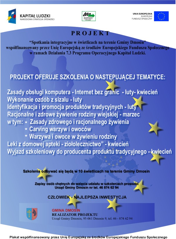 Bezpłatne szkolenia w ramach projektu "Spotkania integracyjne w świetlicach na terenie Gminy Dmosin"