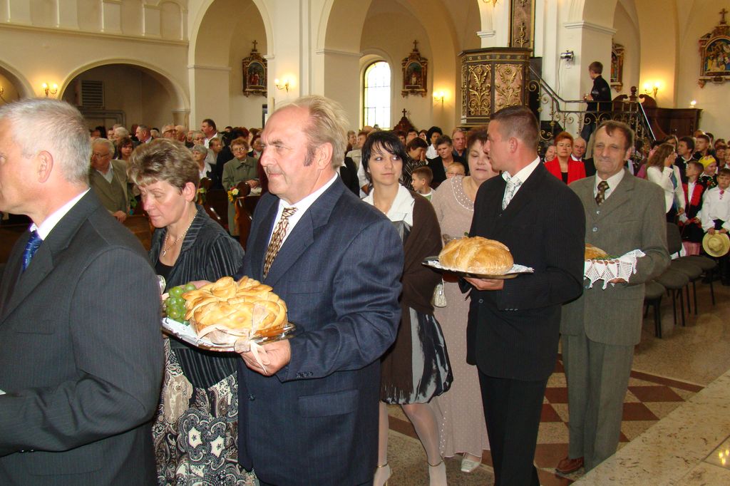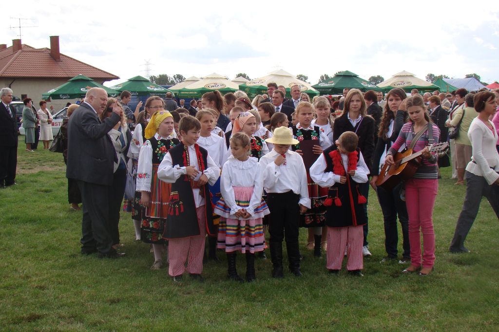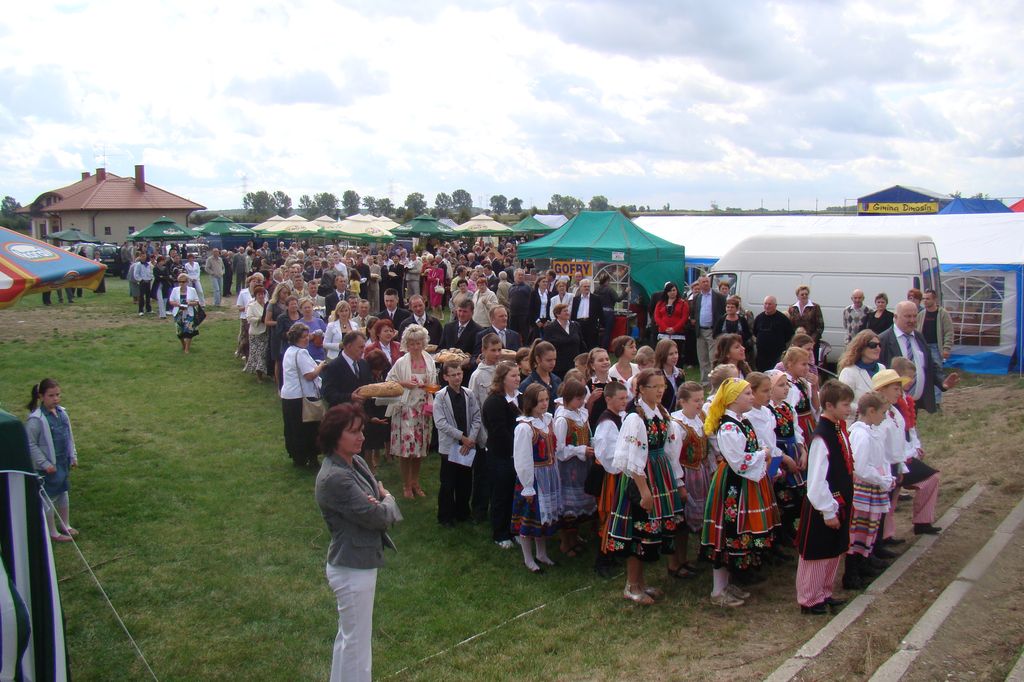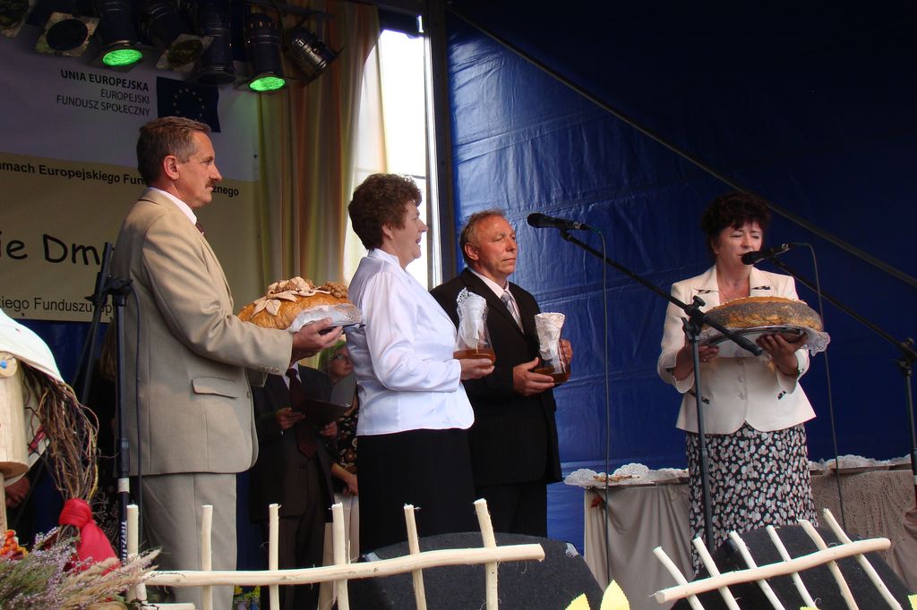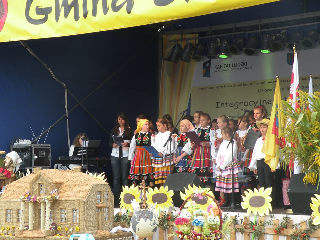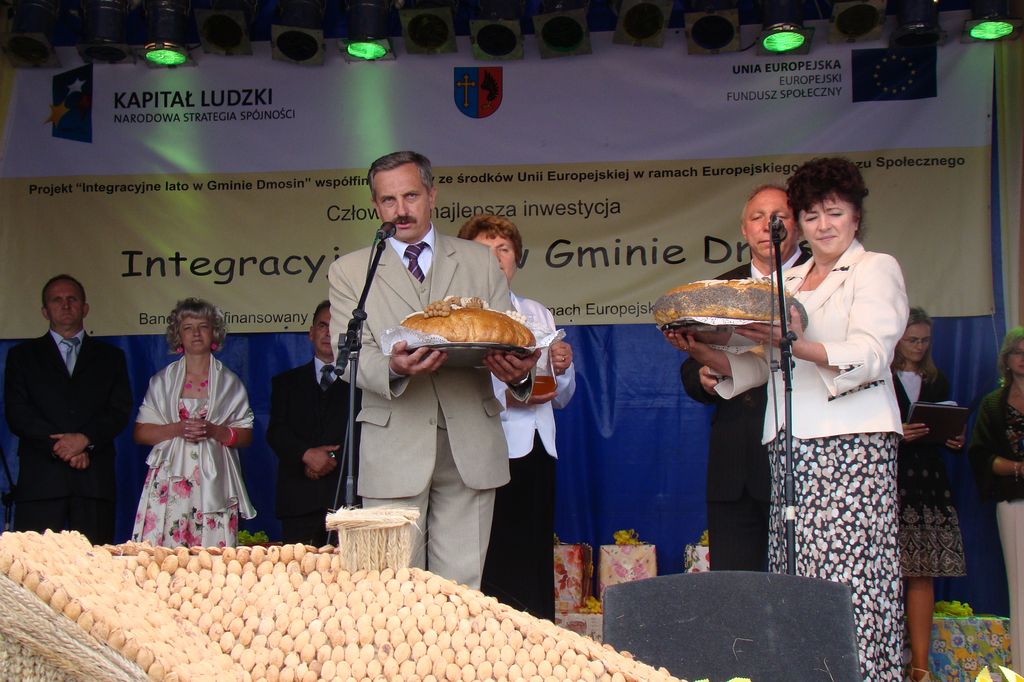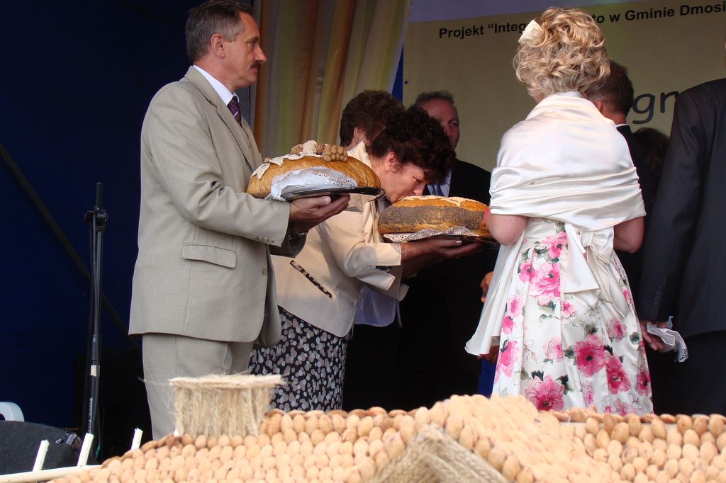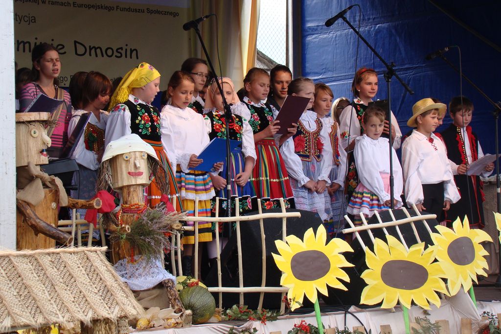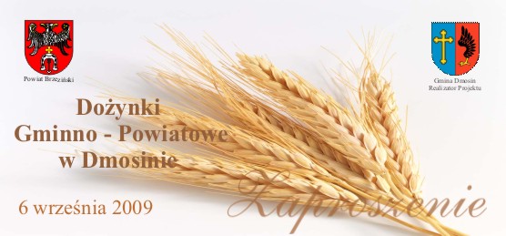 Dożynki to jeden z najpiękniejszych i najważniejszych dni w roku dla każdego rolnika. Uświadamiają nam, że to dzięki ciężkiej pracy rolnika na stoły w naszych domach trafia codziennie polski chleb. Tegoroczne dożynki odbyły się 6 września 2009 r. - tradycyjnie w pierwszą niedzielę września. Rozpoczęły się mszą świętą w kościele parafialnym w Dmosinie. Następnie w asyście pocztów sztandarowych i dzieci z chóru, z Zespołu Szkół Samorządowych w Dmosinie wraz z Zespołem Pieśni i Tańca "Dmosin" korowód dożynkowy udał się na boisko szkolne, gdzie odbyły się dalsze uroczystości i biesiada dożynkowa. Wszystkich serdecznie powitali Wójt Gminy Dmosin Pani Danuta Supera i Starosta Powiatu Brzezińskiego Pan Edmund Kotecki.