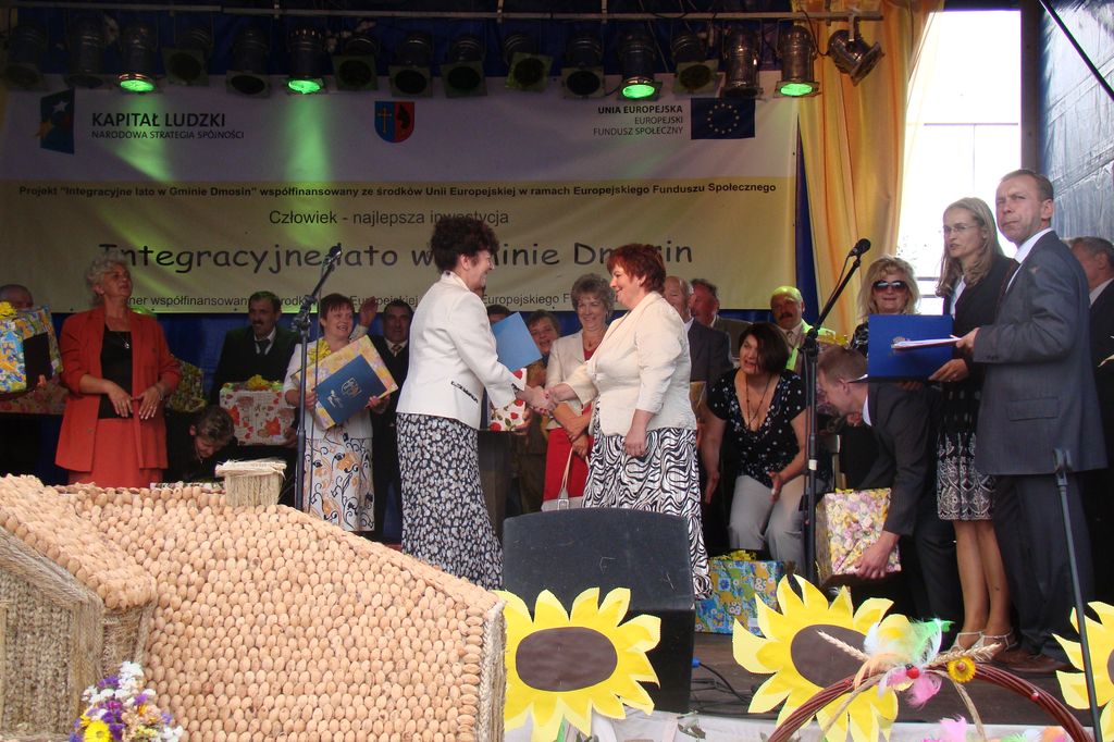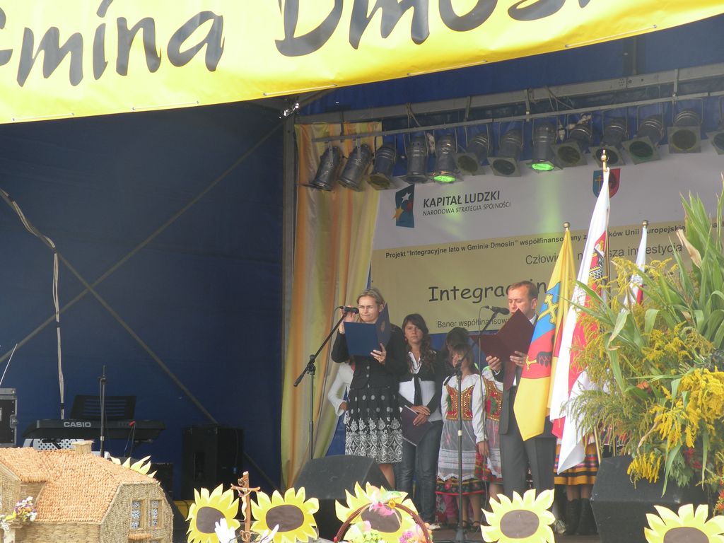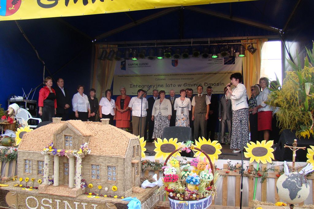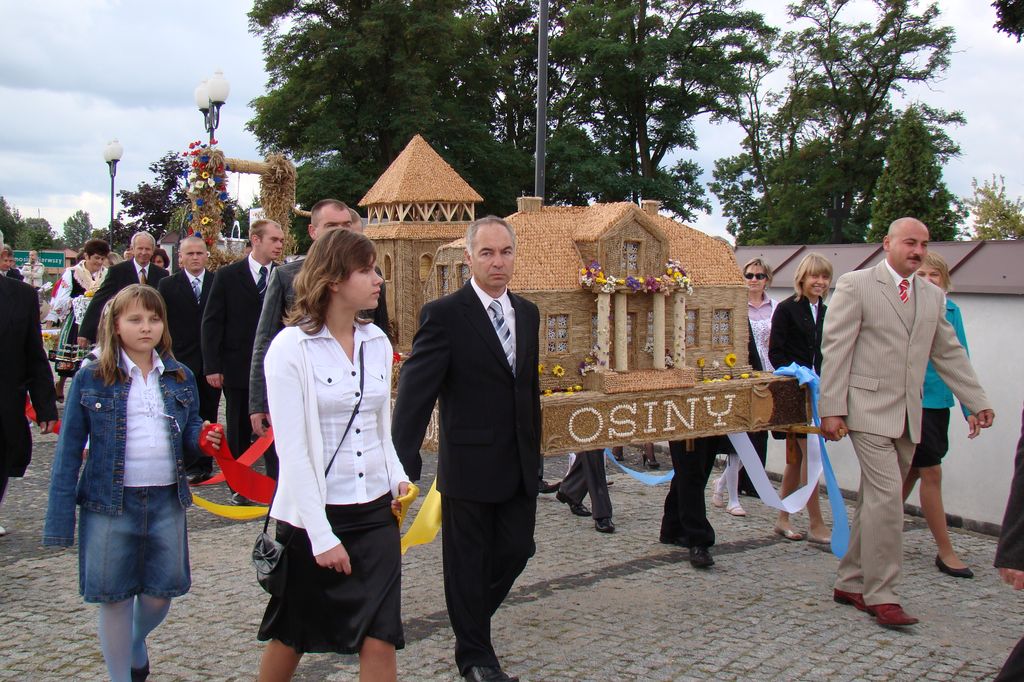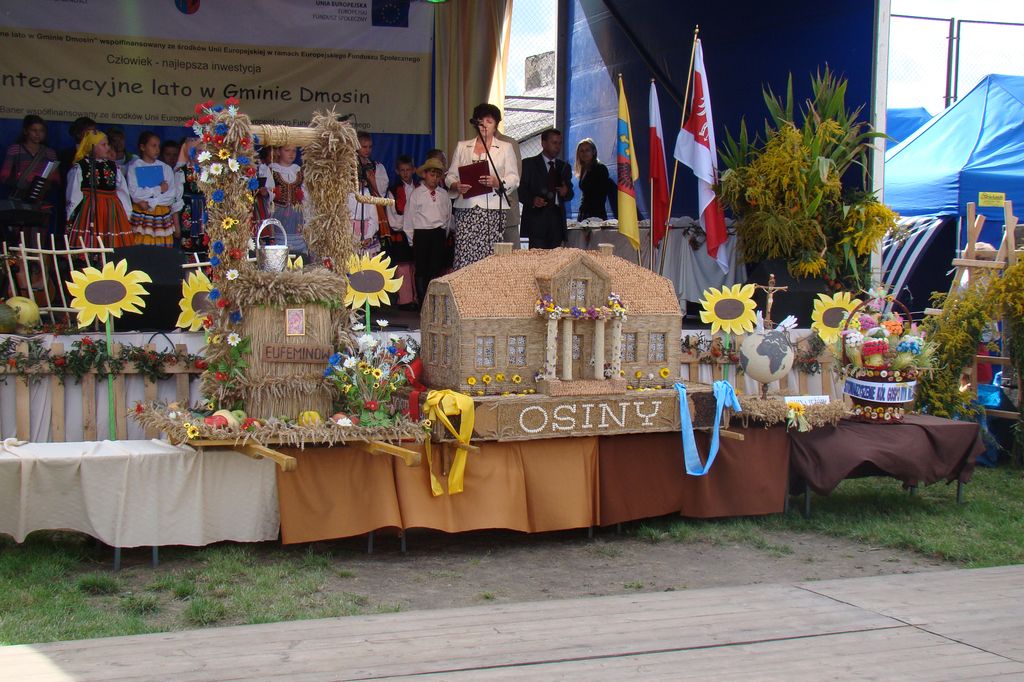 Gospodarzami tegorocznych dożynek było sołectwo: Osiny, Osiny - Zrębów i Dmosin Drugi. Starościną była - Pani Bogusława Kuśnierek, Starostą Pan - Józef Koszmider, Wicestarościną - Pani Beata Zaręba, Wicestarostą - Pan Marek Kantorski. Chleby i wieńce przyniesione przez starostów dożynek i delegacje sołectw naszej Gminy są symbolem ciężkiej pracy, oraz obowiązku, ale też wyrazem codziennych trudności i przeciwności losu, z jakimi borykają się rolnicy.