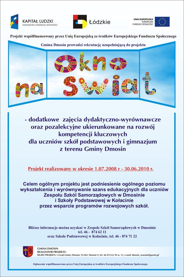 Gmina Dmosin prowadzi rekrutacje uzupełniającą do projektu "Okno na Świat"