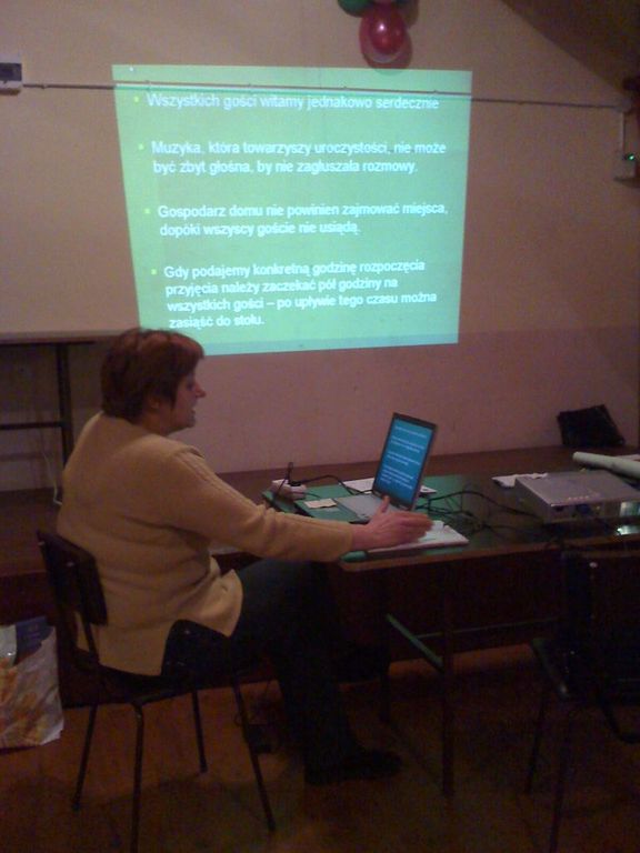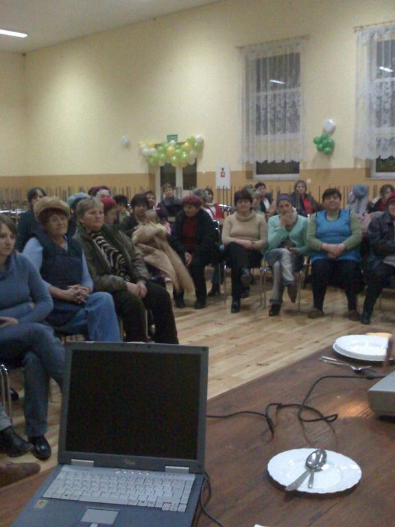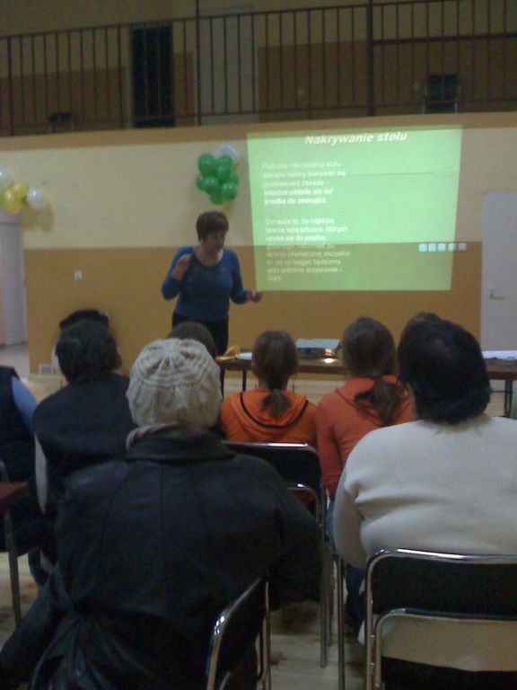 Szkolenia na temat zasad racjonalnego żywienia rodziny wiejskiej, wypieku ciast, potraw z warzyw i mięs oraz estetyki nakrycia stołu trwały od 14 stycznia 2009 r. do 04 lutego 2009 r. i odbyły się w 10 świetlicach wiejskich na terenie Gminy Dmosin.